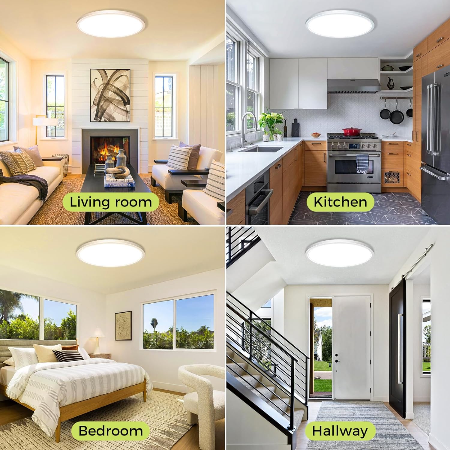 【Energy-saving and Durable】With 24W power and 3200LM brightness, equivalent to a 150W*2 incandescent bulb, this low profile ceiling light has low energy consumption and a long lifespan of up to 30,000 hours, which reduces your electricity bill and frequent replacements, and provides you with an energy efficient lighting solution.